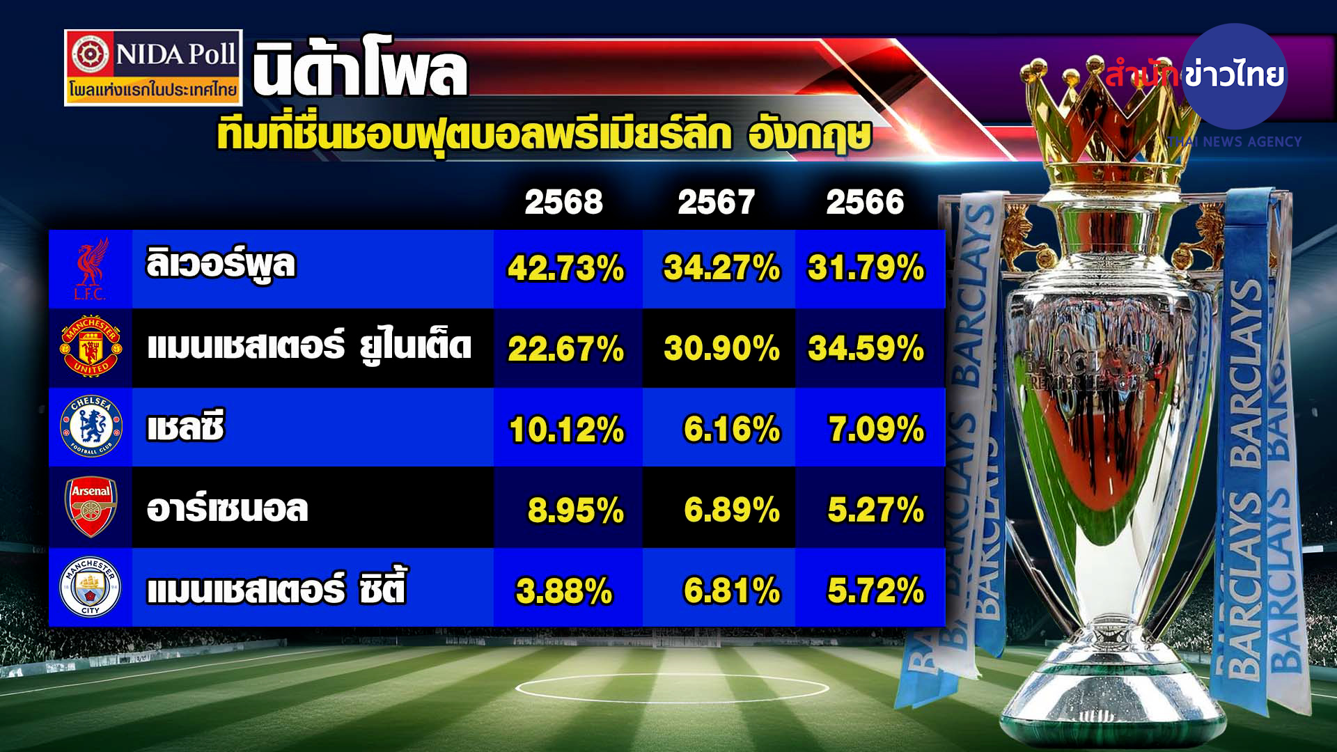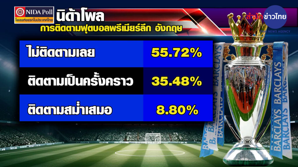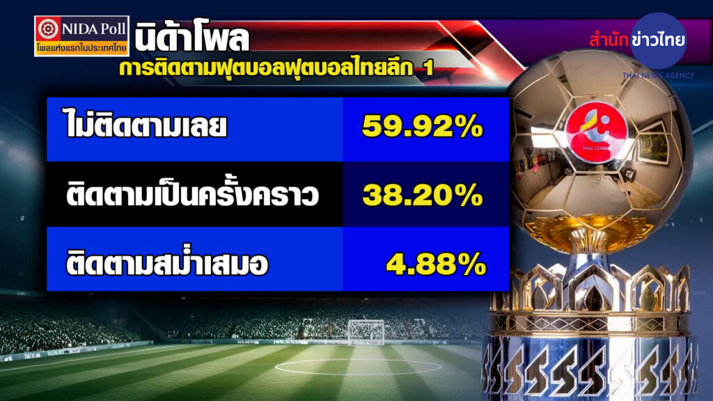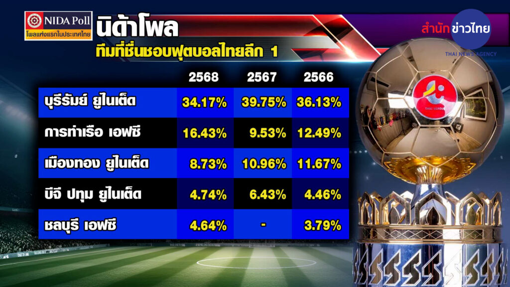 นิด้าโพล เปิดเผยผลการสำรวจ เรื่อง “ฟุตบอลพรีเมียร์ลีก อังกฤษ และฟุตบอลไทยลีก 1 ฤดูกาล 2568-2569”