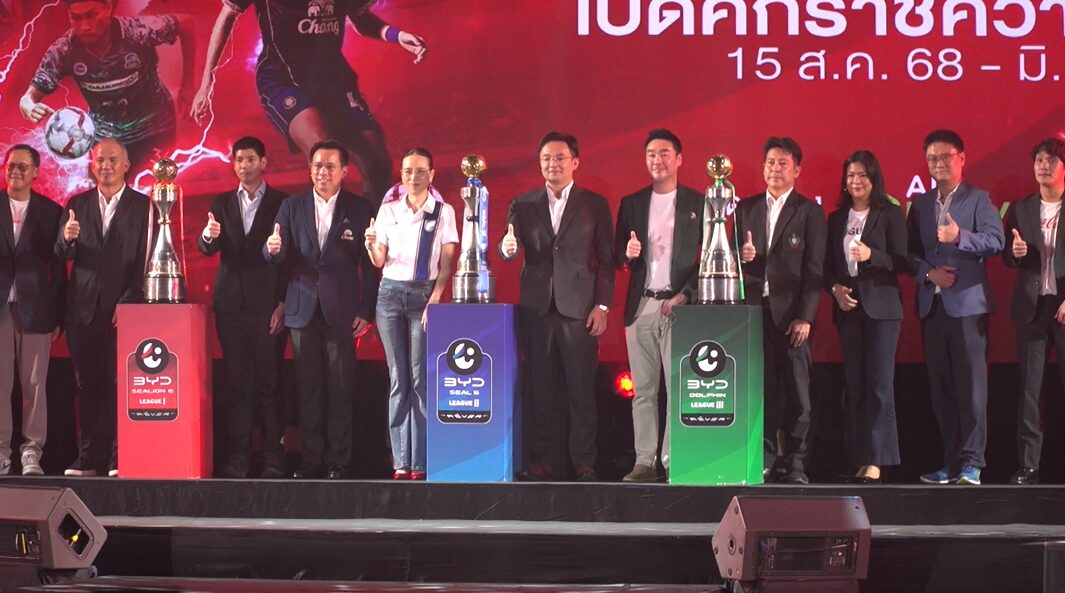 “มาดามแป้ง” นางนวลพรรณ ล่ำซำ นายกสมาคมกีฬาฟุตบอลแห่งประเทศไทยฯ ร่วมยืนยันความพร้อมในการเปิดศักราชใหม่ฟุตบอลไทยลีก ในงาน “Thai League BEYOND THE GAME 2025/26” ก้าวข้ามทุกขีดจำกัด ทะยานสู่เกียรติยศ อย่างยิ่งใหญ่ จัดงานที่ สถานีรถไฟหัวลำโพง ภายใต้แนวคิด The Crossover: Football x Fashion, Art & Music จัดขึ้นเพื่อให้รู้ว่า ฟุตบอลลีกอาชีพกำลังจะเปิดฉากฤดูกาลใหม่ ในวันที่ 15 สิงหาคมนี้ สำหรับ BYD SEALION 6 ลีกหนึ่ง และ BYD SEAL 5 ลีกสอง ส่วน BYD DOLPHIN ลีกสาม ไทยลีก 3 จะเปิดฉากในเดือนกันยายน