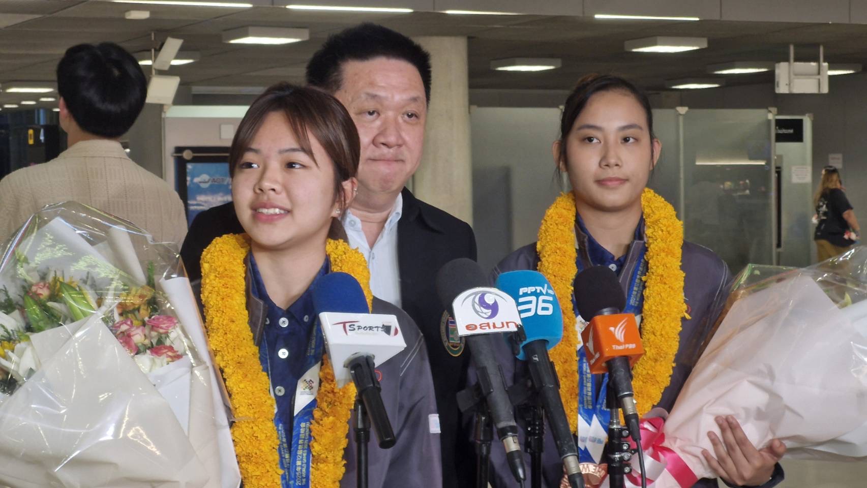 15 ส.ค.68-นายอำนาจ ชยานุรักษ์ ผู้จัดกาทีมสอยคิวทีมชาติไทยชุด ซีเกมส์ ครั้งที่ 33 เดินทางไปรับ 2 ฮีโร่นักสอยคิวหญิงทีมชาติไทย ที่สร้างประวัติศาสตร์ ในการแข่งขัน สนุกเกอร์ 6 แดง เวิล์ดเกมส์ ครั้งที่ 12 ที่เฉิงตู ประเทศ จีน ด้วยการคว้าผลงาน 1 เหรียญเงิน จาก “เจล สระบุรี”นฤดชา เพิ่มพูล นักสนุกเกอร์หญิงทีมชาติไทย และ 1 เหรียญทองแดง จาก “พลอย ขอนแก่น”พลอยชมพู เหล่าเกียรติพงษ์ ที่ท่าอากาศยานสุวรรณภูมิ พร้อมด้วยผู้ปกครองของนักกีฬา โดยผลงานของน้องเจล สระบุรี และพลอย ขอนแก่น จะได้รับเงินอัดฉีดจาก กองทุนพัฒนาการกีฬาแห่งชาติ ให้เหรียญเงิน 500,000 บาท เหรียญทองแดง 200,000 รวมได้รับ 700,000 บาท