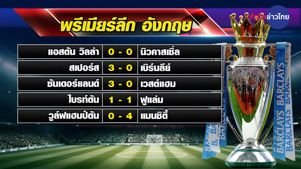 ผลพรีเมียร์ลีกเมื่อคืนที่ผ่านมา 16 ส.ค.68