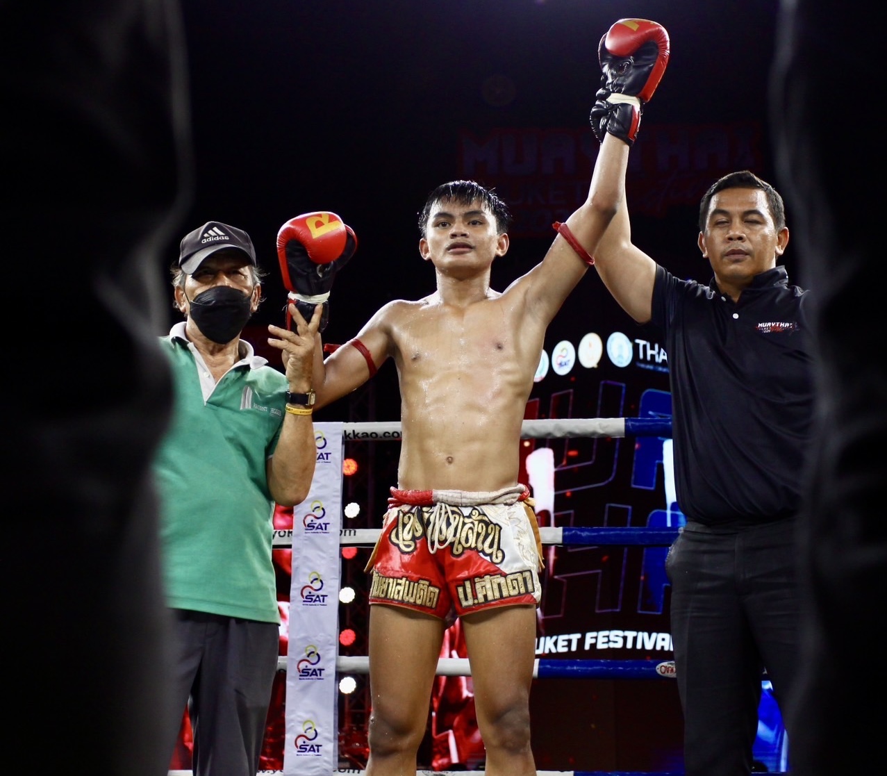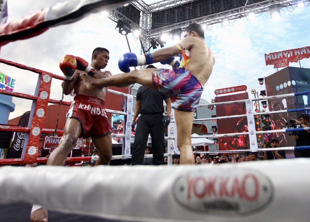 ส่วนผลมวยศึก มวยไทย ภูเก็ต เฟสติวัล 2025 ณ เวทีมวยชั่วคราว โรบินสันไลฟ์สไตล์ ฉลอง (ซอยตาเอียด) จ.ภูเก็ต คู่ที่ 1 รุ่นน้ำหนัก 125 ปอนด์ หยกกระบี่ อบต.สาโรจน์ แพ้น็อค ยอดขุนทรัพย์ ส . เดชดำรงค์ ยก2