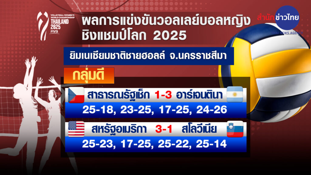 23 ส.ค.- “โค้ชอ๊อต” ยอมรับยังมีหลายสิ่งที่ต้องปรับปรุง แม้ทีมนักตบลูกยางสาวไทย จะเอาชนะ อียิปต์ 3-1 เซต ประเดิมชัยชนะนัดแรก ศึกวอลเลย์บอลหญิงชิงแชมป์โลก 2025