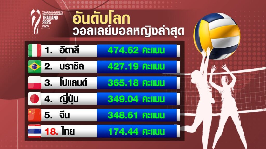หลังทีมวอลเลย์บอลหญิงทีมชาติไทย ลงสนามไปแล้ว 2 นัดในรอบแบ่งกลุ่ม กลุ่มเอ ในการแข่งขันวอลเลย์บอลหญิงชิงแชมป์โลก 2025 ที่อินดอร์ สเตเดียม หัวหมาก ก่อนจะเอาชนะอียิปต์ได้ในนัดแรก 3-1 เซต และชนะสวีเดน 3-0 เซตในนัดล่าสุด ทำให้ผ่านเข้ารอบ 16 ทีมสุดท้ายแน่นอนแล้ว