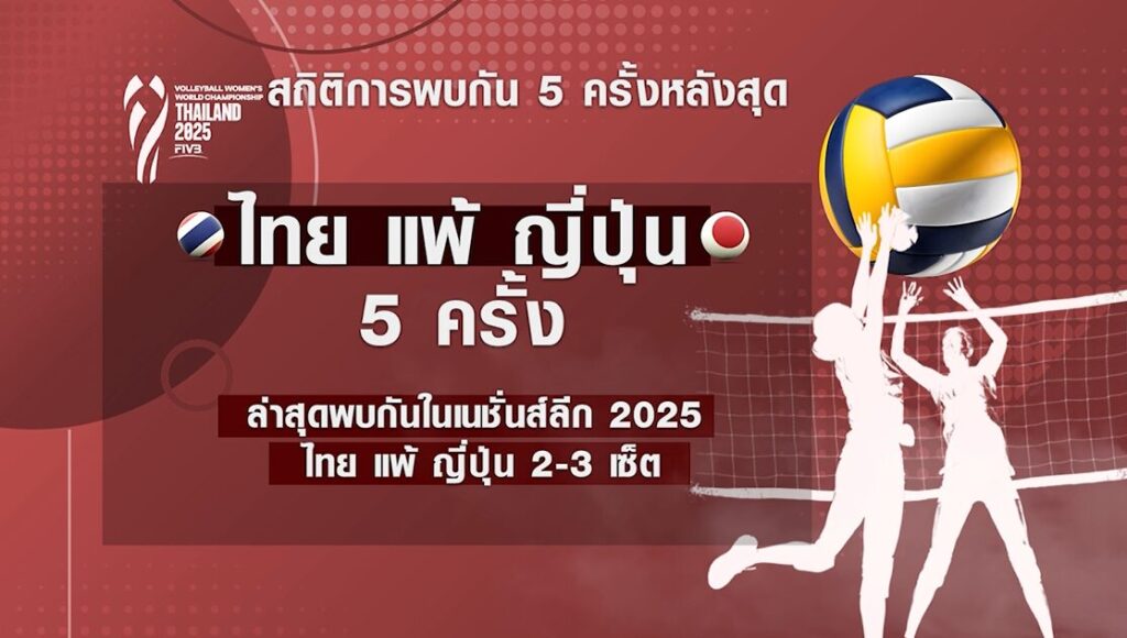 สถิติการพบกัน 5 ครั้งหลังสุด ไทย แพ้ ญี่ปุ่น 5 ครั้ง ล่าสุดพบกันในวอลเลย์บอลหญิงเนชันส์ลีก 2025 ไทย แพ้ ญี่ปุ่น 2-3 เซต โดยไทยออกนำไปก่อน 2-0 เซต แต่กลับมาแพ้ 2-3 เซต อย่างน่าเสียดาย โดยมีสถิติที่น่าสนใจรายบุคคลของผู้เล่นตำแหน่งสำคัญ ที่มีส่วนในการทำคะแนน และเล่นเกมรับของทีมชาติไทย และญี่ปุ่น จาก 3 เกมในรอบแรกมาเปรียบเทียบกัน ปรากฏว่า