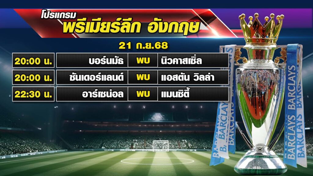 โปรแกรมพรีเมียร์ลีก อังกฤษ 21 ก.ย.68