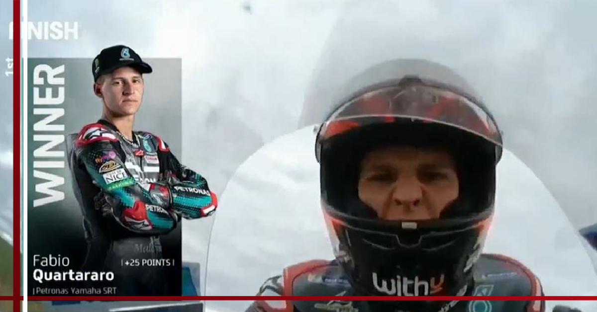 จักรยานยนต์ทางเรียบชิงแชมป์โลก รุ่นโมโตจีพี ในศึก “คาตาลุนญา กรังด์ปรีซ์” ที่เมืองบาร์เซโลนา ประเทศสเปน ฟาบิโอ กวาร์ตาราโร นักบิดชาวฝรั่งเศส จากทีมปิโตรนาส ยามาฮ่า เอสอาร์ที คว้าแชมป์เรซที่ 3 ของฤดูกาลนี้ บิดเข้าเส้นชัยคันแรก ทำเวลา 40 นาที 33.176 วินาที เร็วกว่า ฆวน เมียร์ กับ อเล็กซ์ รินส์ 2 นักบิดจากทีมซูซูกิ 0.928 และ 1.898 วินาที ตามลำดับ ทำให้ ควาร์ตาราโร เก็บเพิ่ม 25 แต้ม มี 108 แต้ม นำอันดับ 1 ทิ้งห่าง ฆวน เมียร์ 8 แต้ม และ มาเวอริค บีญาเลส จากทีมมอนสเตอร์ เอเนอร์จี ยามาฮ่า 18 แต้ม