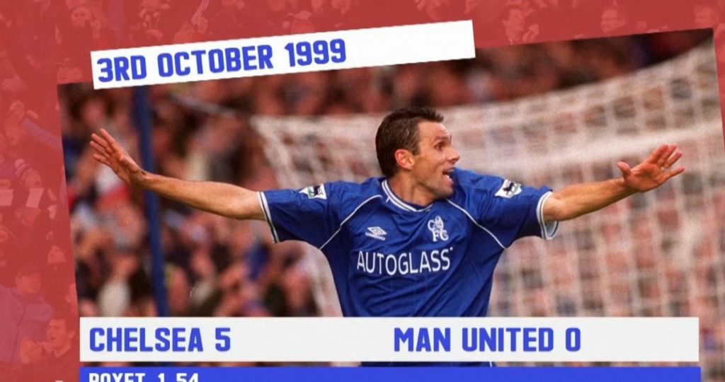 เริ่มที่อันดับ 5 เมื่อวันที่ 3 ตุลาคมปี 1999 “สิงโตน้ำเงินคราม” เชลซี เปิดสแตมฟอร์ดบริดจ์ ถล่ม “ปีศาจแดง” แมนเชสเตอร์ ยูไนเต็ด แชมป์ในฤดูกาลนี้ 5-0 โดยนัดนั้น กุสตาโว โปเยต์ ยิง 2 ประตูในนาทีที่ 1 และ 55