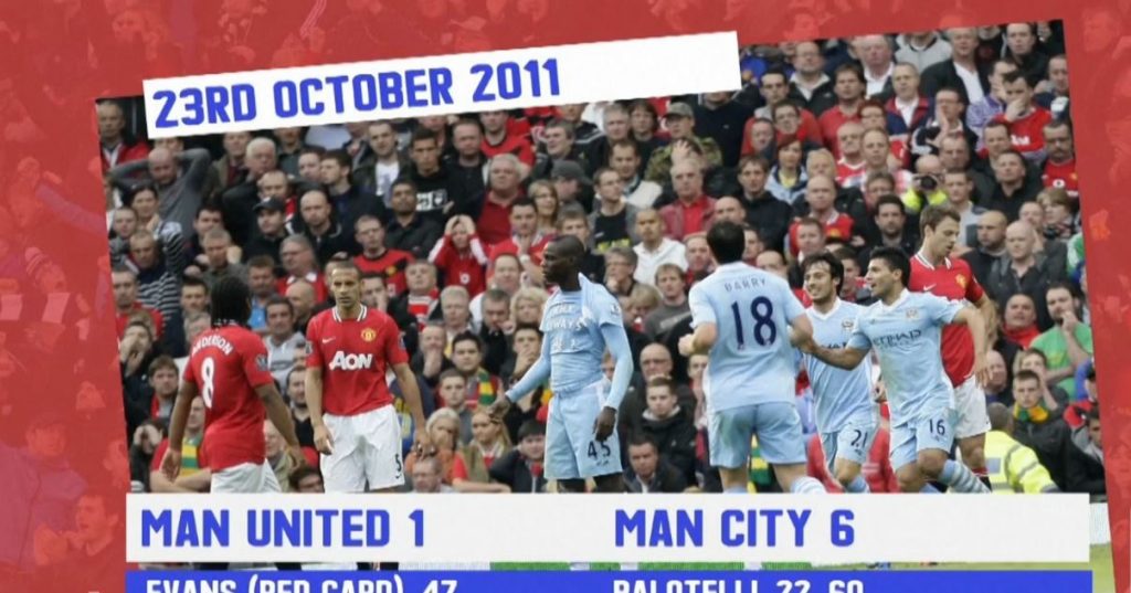 อันดับ 4 เมื่อวันที่ 23 ตุลาคมปี 2011 แมนเชสเตอร์ ยูไนเต็ด เปิดโอลด์แทร็ฟฟอร์ด พ่าย “เรือใบสีฟ้า” แมนเชสเตอร์ ซิตี้ คู่แค้นร่วมเมือง 1-6 เกมนั้น มาริโอ บาโลเตลลี กับ เอดิน เชโก ทำคนละ 2 ประตู โดยหลังทำประตูได้ บาโลเตลลี โชว์เสื้อที่เขียนว่า “Why always me”