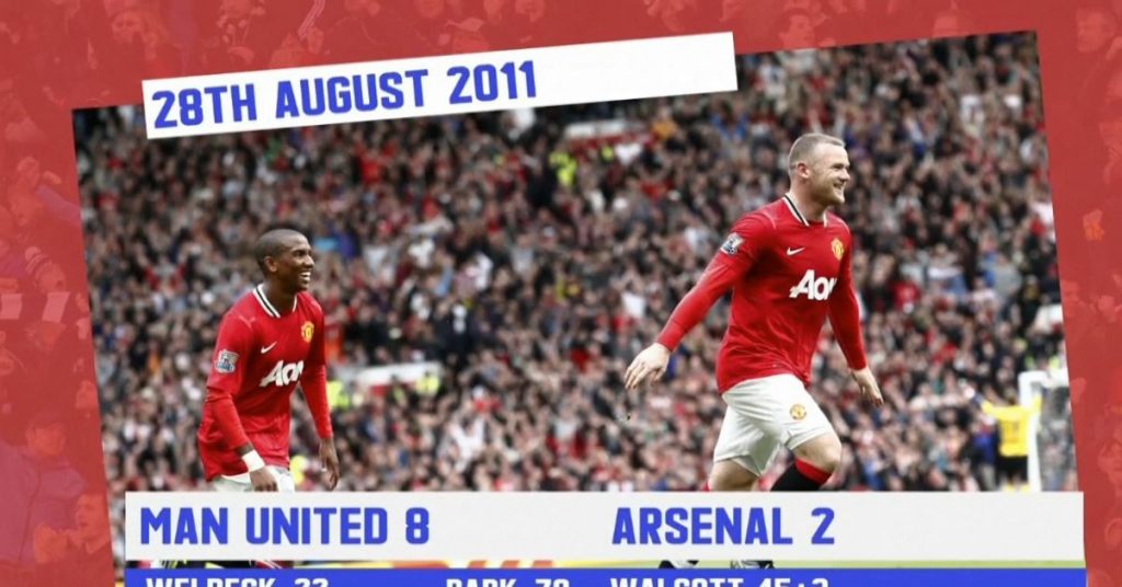อันดับ 3 เมื่อวันที่ 28 สิงหาคม ปี 2011 แมนฯ ยูไนเต็ด ถล่ม “ปืนใหญ่” อาร์เซนอล 8-2 นัดนั้น เวย์น รูนีย์ ซัดแฮตทริกให้แมนฯ ยู ก่อนที่จะจบฤดูกาลด้วยรองแชมป์ มี 89 คะแนน เท่ากับแมนฯ ซิตี้ แต่ผลต่างประตูได้เสียน้อยกว่า
