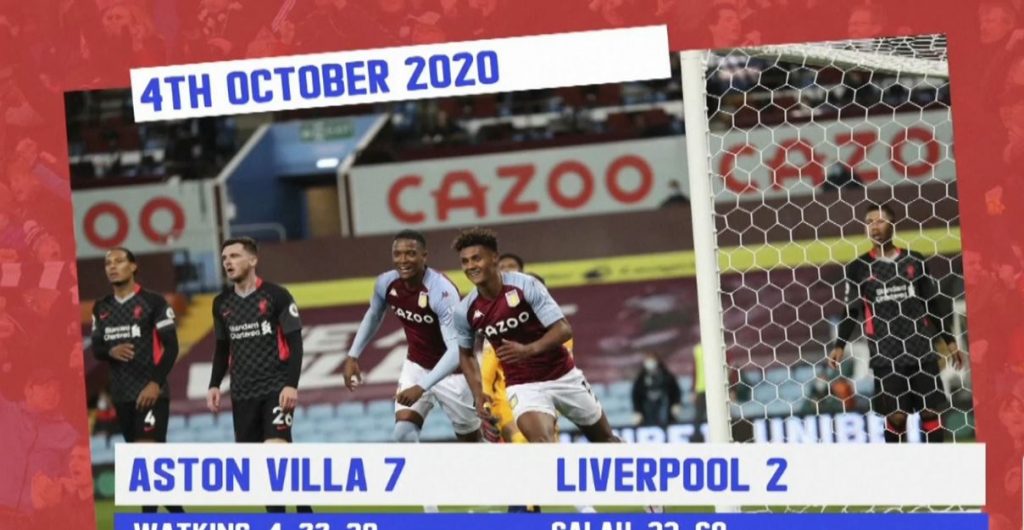 อันดับ 1 เมื่อวันที่ 4 ตุลาคม 2020 ล่าสุด ลิเวอร์พูล แชมป์เก่า บุกไปพ่าย แอสตัน วิลล่า 2-7 นัดนี้ โอลลี วัตกินส์ ซึ่งนับเป็นความพ่ายแพ้ที่เละเทะที่สุดในยุคของเจอร์เกน คล็อปป์ และถือเป็นการเสียประตูมากที่สุดถึง 7 ลูกของลิเวอร์พูล นับตั้งแต่ปี 1963.-สำนักข่าวไทย
