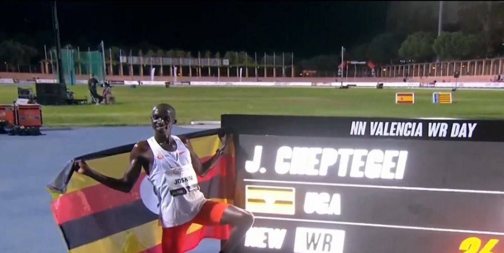 ส่วนวิ่ง 10,000 เมตรชาย จอชัวร์ เช็ปเตไก นักวิ่งจากยูกันดา วัย 24 ปี ทำลายสถิติโลกได้เช่นเดียวกัน หลังวิ่งเข้าเส้นชัยทำเวลา 26 นาที 11 จุด 02 วินาที ทำลายสถิติของ เคเนนิซา เบเกเล นักวิ่งเอธิโอเปีย ที่ทำไว้ 26 นาที 17.53 วินาที ในการแข่งขันที่รัสเซลส์ ประเทศเบลเยียม เมื่อ 15 ปีที่แล้ว.-สำนักข่าวไทย