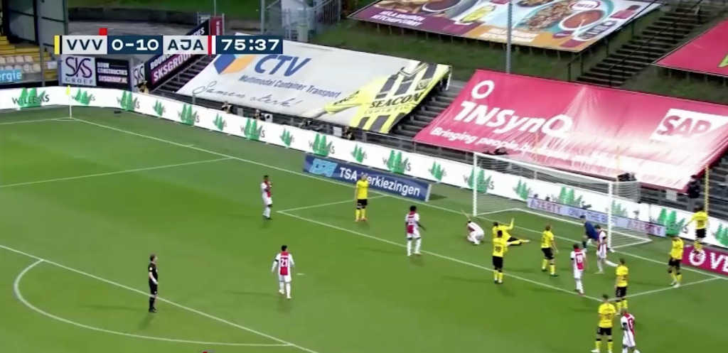 อาแจ็กซ์ อัมสเตอร์ดัม บุกไปถล่มเอาชนะ วีวีวี-เวลโล 13-0 ในศึกเอเรดิวิซี ลีก ฮอลแลนด์ โดยนัดนี้ ลาสซินา ตราโอเร ดาวยิงวัย 19 ปีของทีมชาติบูร์กินา ฟาโซ ยิง 5 ประตู ทำให้อาแจ็กซ์นำจ่าฝูง เตะ 6 นัด มี 15 คะแนน สร้างสถิติเป็นทีมแรกในศึก เอเรดิวิซี ที่ทำได้ถึง 13 ประตูในนัดเดียว และยังเป็นการทุบสถิติเดิม 12 ประตู ที่พวกเขาเคยไล่ถล่ม วิเทสส์ 12-1 เมื่อเดือนพฤษภาคม ปี 1972 แต่สถิติยิงประตูต่อเกมสูงสุดของอาแจ๊กซ์ คือนัดถล่ม เรด บอยส์ ดิฟเฟอร์ดังเก จากลักเซมเบิร์ก 14-0 ในศึกยูฟ่า คัพ รอบแรก นัดที่ 2 เมื่อปี 1984