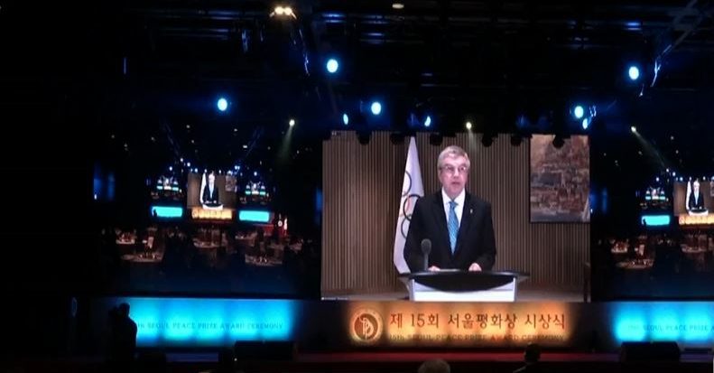 มูลนิธิวัฒนธรรมรางวัลสันติภาพแห่งกรุงโซล เกาหลีใต้ มอบรางวัล Seoul Peace Prize แก่ โธมัส บาค ประธานคณะกรรมการโอลิมปิกสากล หรือไอโอซี จากความตั้งใจในการส่งเสริมสันติภาพ และการมีส่วนร่วมในการแข่งขันกีฬาโอลิมปิกฤดูหนาว พยองชาง 2018 โดยทั้งเกาหลีเหนือและเกาหลีใต้ได้ร่วมทีมเดียวกัน ภายใต้ธงคาบสมุทรเกาหลีในการเดินพาเหรดเข้าสู่พิธีเปิดการแข่งขัน และยังได้ผลักดันให้มีการรวมทีมเกาหลีเหนือ-ใต้ ในกีฬาฮอกกี้น้ำแข็งหญิงเป็นครั้งแรกในประวิติศาสตร์โอลิมปิก
