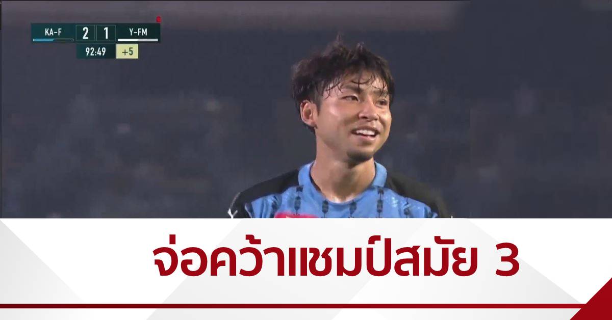 ญี่ปุ่น 19 พ.ย.- คาวาซากิ ฟรอนตาเล ต้องการชัยชนะอีกเพียงแค่นัดเดียว ก็จะคว้าแชมป์ฟุตบอลเจลีก ญี่ปุ่น ในฤดูกาลนี้ หลังเปิดบ้านชนะ โยโกฮามา มารินอส 3-1