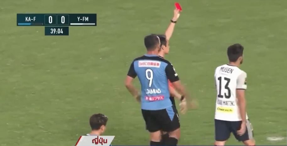 เกมนี้ ท้ายครึ่งแรก นาที 40 มารินอส ต้องมาเหลือผู้เล่น 10 คน จากจังหวะที่ มานาบุ ซาอิโตะ หลุดเดี่ยวพยายามยิงข้ามหัว ยูเฮ ทากาโอกะ ที่ออกมานอกกรอบแล้วใช้มือปัดบอลนอกเขตโทษ ผู้ตัดสินแจกใบแดงไล่ออกจากสนามทันที ก่อนที่มารินอสจะส่งผู้รักษาประตูมือสองอย่าง พาวเวลล์ โอบินนา ลงมาเล่นแทน จบครึ่งแรกยัง 0-0
