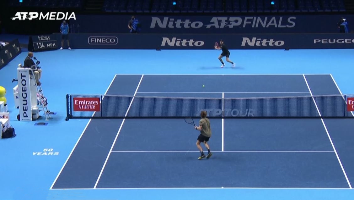 เทนนิสเอทีพี ไฟนอลส์ ที่โอทู อารีนา ในกรุงลอนดอน อังกฤษ กลุ่มลอนดอน 2020 นัดสุดท้าย ราฟาเอล นาดาล มือ 2 ของโลก จากสเปน พบกับ สเตฟานอส ซิตซิปาส มือ 6 ของโลก และแชมป์เก่าจากกรีซ เกมนี้ นาดาล ต้องเล่นถึง 3 เซต ก่อนจะเอาชนะไปได้ 2-1 เซต 6-4, 4-6 และ 6-2 เก็บชัยชนะเป็นนัดที่ 2 ยังอยู่บนเส้นทางการลุ้นแชมป์รายการนี้สมัยแรก หลังผ่านเข้ารอบรองชนะเลิศรายการนี้เป็นสมัยที่ 6 ไปพบกับ ดานิล เมดเวเดฟ มือ 4 ของโลก จากรัสเซีย