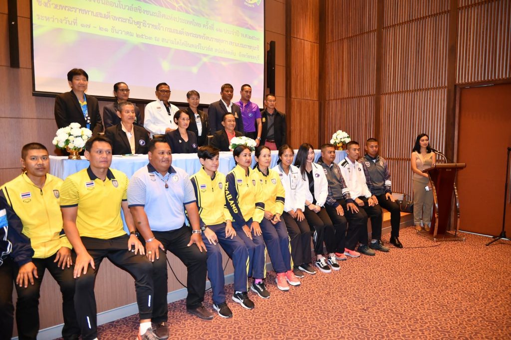 “นางภัสสร ไบรทอัน” นายกสมาคมกีฬาลอนโบวล์สแห่งประเทศไทย ประธานพิธีแถลงข่าว ร่วมด้วย “พลเรือโทอาทร เคลือบมาศ” อุปนายกสมาคมกีฬาลอนโบวล์สแห่งประเทศไทย คนที่ 1 “นายดนัย ทรัพย์สิน” เลขาธิการและนายทะเบียน และ นักกีฬาลอนโบวล์สแห่งประเทศไทย
