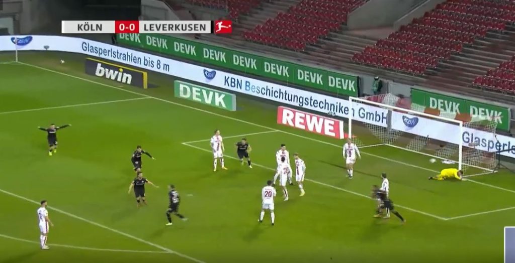 อีกคู่ โคโลญจน์ อันดับที่ 15 เปิดบ้านพบ ไบเออร์ เลเวอร์คูเซ่น จ่าฝูง นาทีที่ 8 มิตเชลล์ ไวเซอร์ วอลเล่ย์เต็มข้อให้ทีมเยือนขึ้นนำ 1-0 นาทีที่ 10 นาดีเอม อามีรี เปิดให้ มูซา ดียาบี ลากไปยิงให้ทีมเยือนนำห่าง 2-0 ครึ่งหลังนาทีที่ 54 ดียาบี เปิดบอลเข้ากรอบเขตโทษให้ ปาทริค ชิค ชาร์จจ่อๆ เข้าไปให้ทีมเยือนนำห่าง 3-0 นาทีที่ 59 ลีออน ไบลีย์ เปิดให้ โฟลรีอัน เวียร์ทซ ยิงประตูปิดท้ายช่วยให้เลเวอร์คูเซ่น บุกชนะ โคโลญจน์ 4-0 มี 28 แต้ม รั้งจ่าฝูงต่อไป ส่วนโคโลญจน์ อยู่อันดับ 15 มี 10 คะแนน