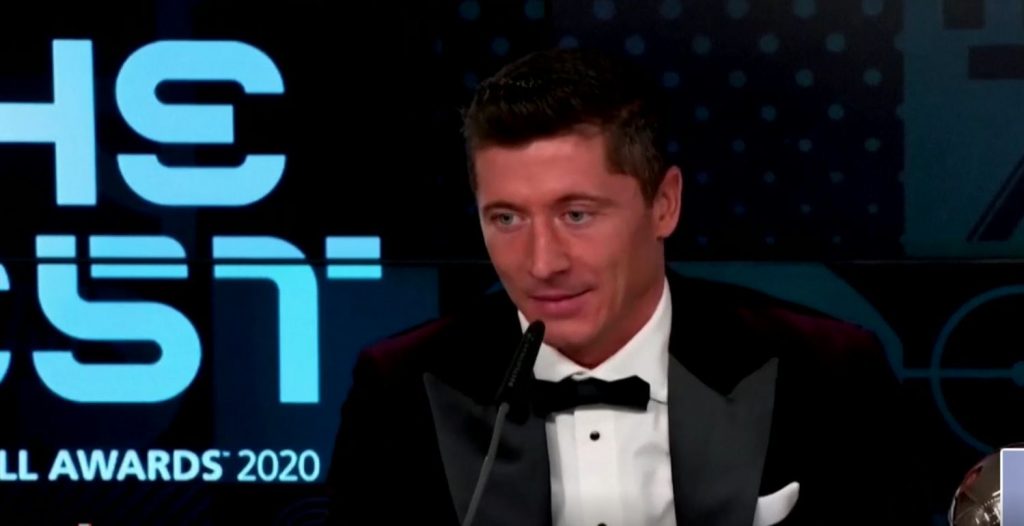 เลวานดอฟสกี้ วัย 32 ปี คว้ารางวัลนักฟุตบอลชายยอดเยี่ยม หรือ “เดอะ เบสต์ ฟีฟ่า เมนส์ เพลเยอร์” โดยได้รับคะแนนโหวต 52 คะแนน เหนือ คริสเตียโน่ โรนัลโด้ (38 คะแนน) และ ลิโอเนล เมสซี่ (35 คะแนน) จากผลงานอันยอดเยี่ยมในฤดูกาล 2019/20 ที่ทำประตูไปถึง 55 ประตู จากการลงเล่น 47 นัด พร้อมช่วย “เสือใต้” กวาดเรียบทั้งแชมป์ บุนเดสลีกา, เดเอฟเบ-โพคาล และยูฟ่า แชมเปียนส์ ลีก