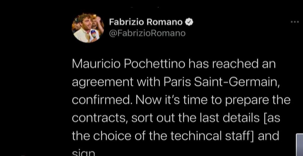 ฟาบริซิโอ โรมาโน่ นักข่าวกีฬาชื่อดังจากอิตาลี โพสต์ทวิตเตอร์รายงานข่าวว่า สโมสรปารีส แซงต์-แชร์กแมง ทีมอันดับ 3 จากศึกลีกเอิง ฝรั่งเศส เตรียมแต่งตั้ง เมาริซิโอ โปเช็ตติโน่ อดีตกุนซือ “ไก่เดือยทอง” ท็อตแน่ม ฮ็อทสเปอร์ วัย 48 ปี เป็นผู้จัดการทีมคนใหม่ หลังจากที่เพิ่งปลด โธมัส ทูเคิล ออกจากตำแหน่ง แม้จะพาทีมเปิดบ้านถล่มชนะ สตราส์บูร์ก 4-0 เมื่อวันพุธที่ผ่านมา