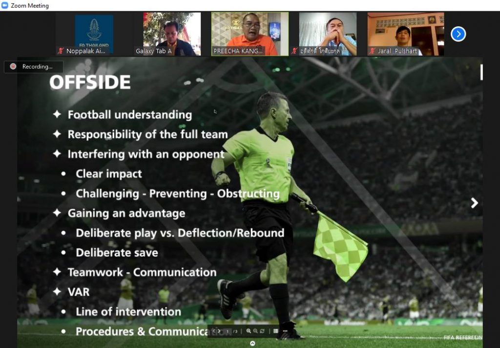 ตามที่ การแข่งขันฟุตบอลไทยลีกทุกระดับต้องถูกเลื่อนการแข่งขันออกไป เนื่องจากสถานการณ์การแพร่ระบาดของโควิด19 รอบใหม่ ทางฝ่ายพัฒนาผู้ตัดสินได้เตรียมแผนสำหรับพัฒนาผู้ตัดสินทั้งในทางเทคนิค และสภาพร่างกาย ผ่านทางวีดีโอ คอนเฟอเรนซ์ เพื่อให้มีความพร้อมต่อเนื่องสำหรับโปรแกรมการแข่งขันที่จะกลับมา