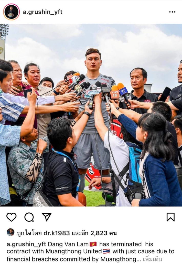 13 ม.ค. 64 -กรุงเทพฯอังเดรย์ กรูชิน เอเยนต์ของ ดัง วาน ลัม ผู้รักษาประตูทีมชาติเวียดนาม วัย 27 ปี เผยผ่าน อินสตาแกรมส่วนตัวเมื่อกลางดึกเมื่อคืนว่า ได้ยกเลิกสัญญากับ เอสซีจี เมืองทอง ยูไนเต็ด ต้นสังกัดในศึกโตโยต้า ไทยลีก แล้วเนื่องจากสโมสรละเมิดข้อตกลงเรื่องเงิน ด้วยเหตุอันสมควร เนื่องจากทางเมืองทองละเมิดข้อตกลงเรื่องการเงิน สัญญานั้นจะถูกยกเลิกตามกฎของฟีฟ่าทุกประการ