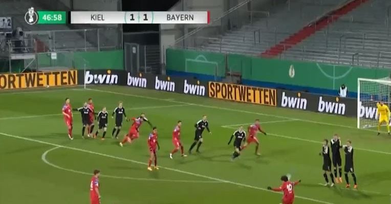 และเกมทำท่าจะจบด้วยชัยชนะของ บาเยิร์น มิวนิค แต่เจ้าถิ่นมาได้ประตูตีเสมอ 2-2 ในช่วงทดเวลาบาดเจ็บนาที 90+5 จาก เฮาเค วาห์ล จบเกมเสมอกัน 2-2 ต้องต่อเวลาพิเศษออกไป แต่ทั้งสองทีมยังทำอะไรกันไม่ได้ ต้องตัดสินด้วยการดวลจุดโทษ และเป็น โฮลชไตน์ คีล ที่ยิงได้แม่นยำกว่าเอาชนะจุดโทษไป 6-5 ผ่านเข้ารอบ 3 ไปพบกับ ดาร์มสตัดท์ ส่วน บาเยิร์น มิวนิค ตกรอบแบบพลิกล็อก