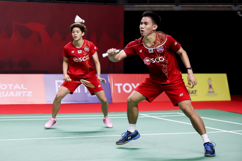 นนทบุรี 14 ม.ค. 64 . -การแข่งขันแบดมินตัน ศึก “โยเน็กซ์ ไทยแลนด์ โอเพ่น ” ประเภทคู่ผสมรอบเมนดรอว์รอบสอง (16 คู่) “บาส” เดชาพล พัววรานุเคราะห์ กับ “ปอป้อ” ทรัพย์สิรี แต้รัตนชัย คู่มือวาง 1 ของรายการ คู่มืออันดับ 3 ของโลก พลิกแซงกลับมาเอาชนะ เกา ซุนฮวด กับ เชวอน เจมี่ไล คู่มืออันดับ 12 ของโลกจากมาเลเซียไปได้อย่างสนุกสูสี 2-1 เกม 20-22 , 21-18 และ 21-12 ใช้เวลาแข่งขัน 63 นาที