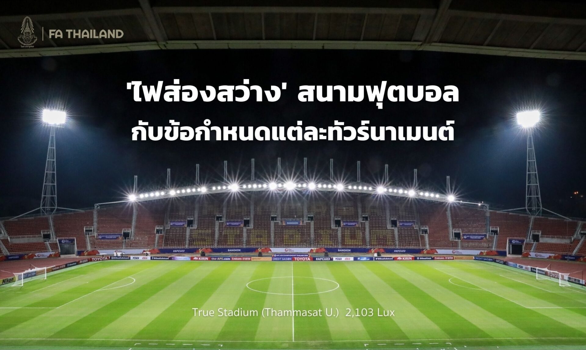 โดย 4 สโมสรตัวแทนจากประเทศไทย ที่คว้าสิทธิ์เข้าร่วมแข่งขันฟุตบอล เอเอฟซี แชมเปี้ยนส์ลีก ฤดูกาล 2021 รอบแบ่งกลุ่ม ประกอบไปด้วย สโมสรบีจี ปทุม ยูไนเต็ด : 1,610 ลักซ์ และ การท่าเรือ เอฟซี : 1,215 ลักซ์ ซึ่งเท่ากับว่าค่าไฟส่องสว่างของสนามเหย้าของทั้งสองทีม ยังไม่ผ่านมาตรฐานที่เอเอฟซี กำหนดไว้ คือ ไม่น้อยกว่า 1,800 ลักซ์ ซึ่งทั้งสองทีมจะต้องปรับปรุงให้แล้วเสร็จไม่เกินวันที่ 1 เมษายน 2564