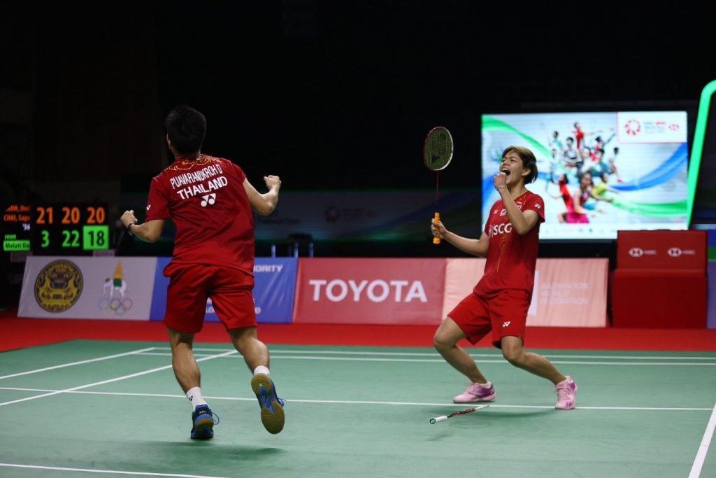แบดมินตัน ซูเปอร์ 1,000 รายการ “โยเน็กซ์ ไทยแลนด์ โอเพ่น” ที่อิมแพ็ค อารีน่า เมืองทองธานี ประเภทคู่ผสมรอบชิงชนะเลิศ “บาส” เดชาพล พัววรานุเคราะห์ กับ “ปอป้อ” ทรัพย์สิรี แต้รัตนชัย คู่มือวาง 1 ของรายการ คู่มืออันดับ 3 ของโลก ใช้เวลา 56 นาที เอาชนะ ปราวีน จอร์แดน กับ เมลาติ เดวา ออตตาเวียนติ คู่มือวางอันดับ 2 ของรายการ คู่มืออันดับ 4 ของโลกจากอินโดนีเซีย ไปแบบสุดมัน 2-1 เกม 21-3, 20-22, 21-18 คว้าแชมป์ไปครองพร้อมกับรับเงินรางวัล 74,000 ดอลลาร์สหรัฐ หรือประมาณ 2,220,000 บาท ส่วนปราวีน จอร์แดน กับ เมลาติ เดวา ออตตาเวียนติ รองแชมป์ รับเงินรางวัล 35,000 ดอลลาร์สหรัฐ หรือ ประมาณ 1,050,000 บาท.- สำนักข่าวไทย