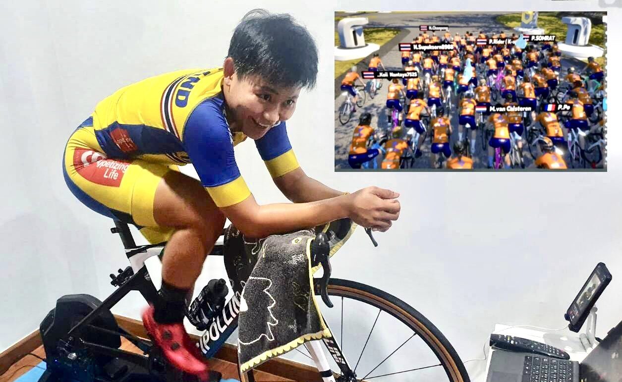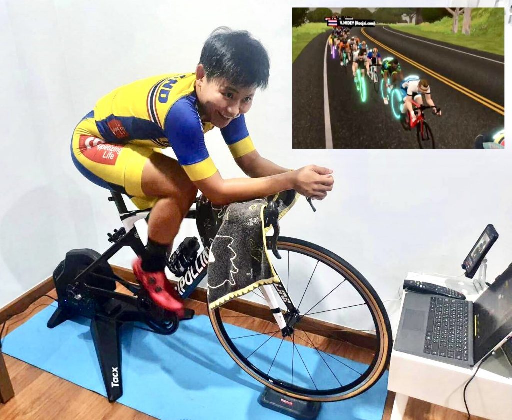 21 ม.ค. -“บีซ” ร.ท.หญิง จุฑาธิป มณีพันธุ์ นักปั่นทีมชาติไทย ปั่นจักยานออนไลน์ในโครงการ “ปั่นในบ้านต้านโควิด” เฟส 2 ผ่านแอปพลิเคชัน Zwift เส้นทาง Casse – Pattes ระยะทาง 23.8 กม. โดยชิงชัยกับนักจักรยานจากทั่วโลก. -สำนักข่าวไทย