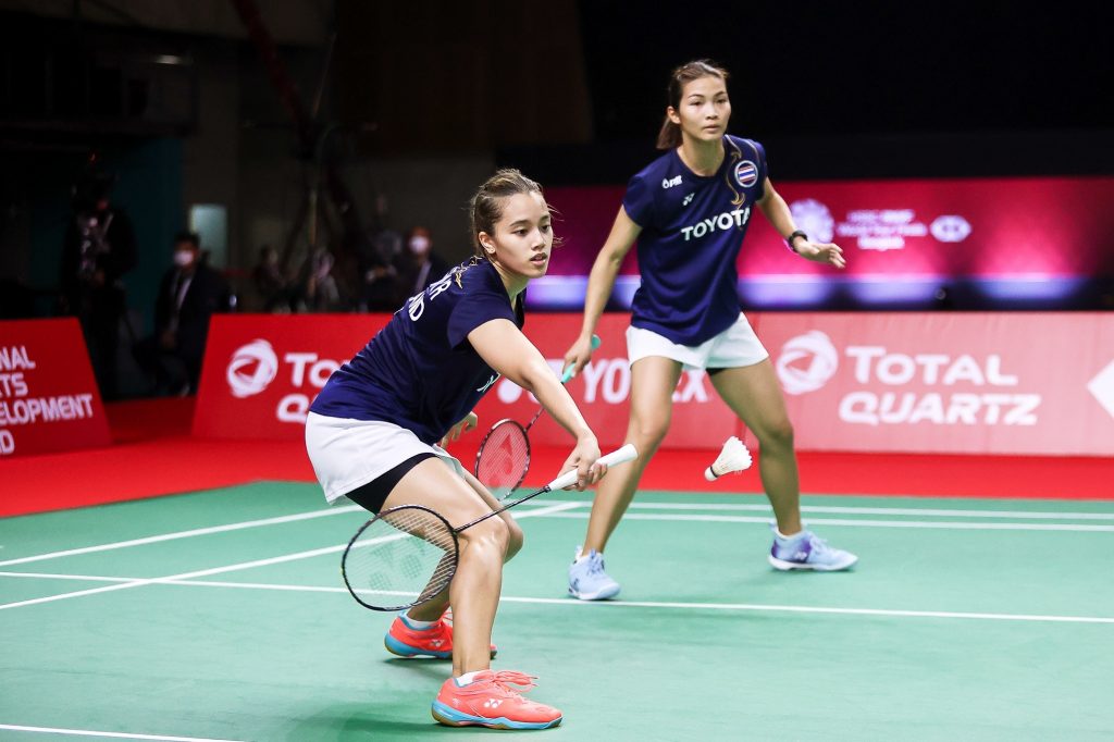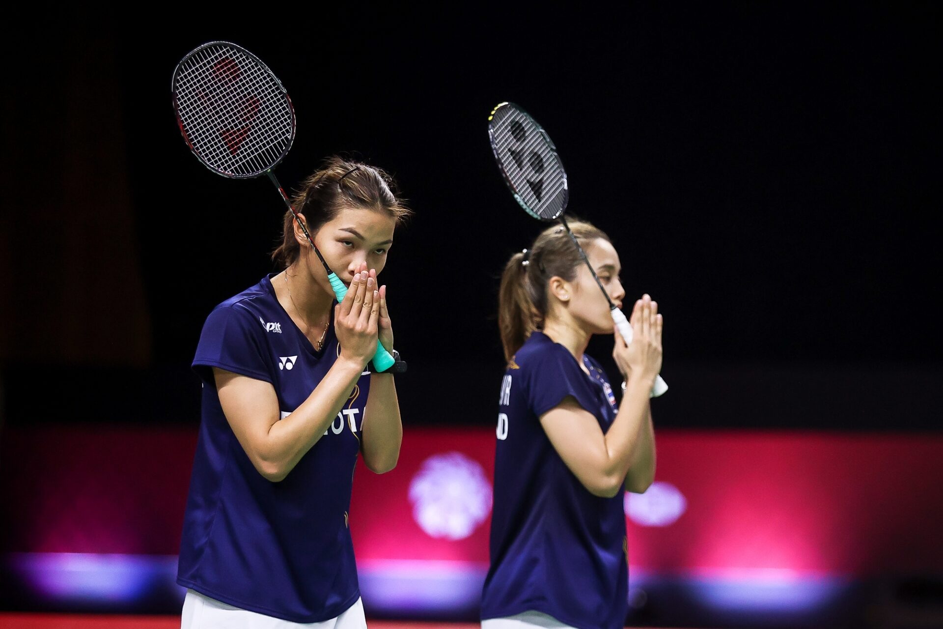 ประเภทหญิงคู่ กลุ่ม บี แมตช์ที่สอง “กิ๊ฟ” จงกลพรรณ กิติธารากุล กับ “วิว” รวินดา ประจงใจ คู่มืออันดับ 11 ของโลก แพ้ให้กับ คิม โซยอง กับ กอง ฮียอง คู่มืออันดับ 6 ของโลกจากเกาหลีใต้ 0-2 เกม 12-21 และ 14-21 ใช้เวลาแข่งขัน 49 นาที- สำนักข่าวไทย.