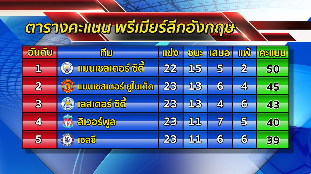 อังกฤษ 8 ก.พ.- ฟุตบอลพรีเมียร์ลีก อังกฤษ แชมป์เก่า “หงส์แดง” ลิเวอร์พูล พ่ายคารัง 3 นัดติด หลังแพ้ แมนเชสเตอร์ ซิตี้ ส่วน โทมัส ทูเคิล พาเชลซีคว้าชัย 3 นัดติดต่อกัน