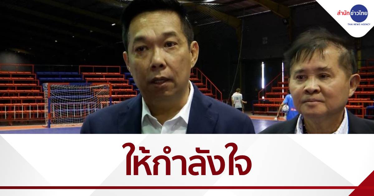 โกดัง สเตเดียม 17 ก.พ.- ประธานพัฒนาฟุตซอลทีมชาติไทย และผู้จัดการทีม ให้กำลังใจนักเตะโต๊ะเล็กไทย เพื่อเตรียมลุยฟุตซอลชิงแชมป์โลก และอีก 3 รายการใหญ่ในปีนี้และปีหน้า