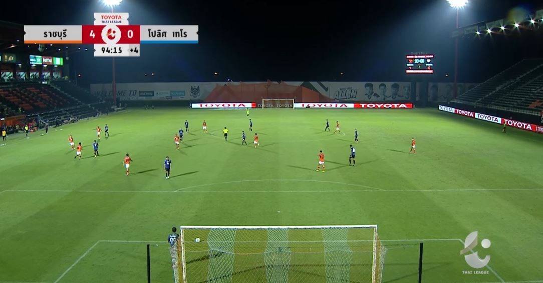 ครึ่งหลังนาทีที่ 87 ฟิลิป โรลเลอร์ ได้บอลทางฝั่งขวา ก่อนจ่ายย้อนมาให้ ปฐมชัย เสือสกุล ยิงแสกหน้า ประสิทธิ์ ผดุงโชค เข้าไปให้ราชบุรี หนีห่าง 4-0