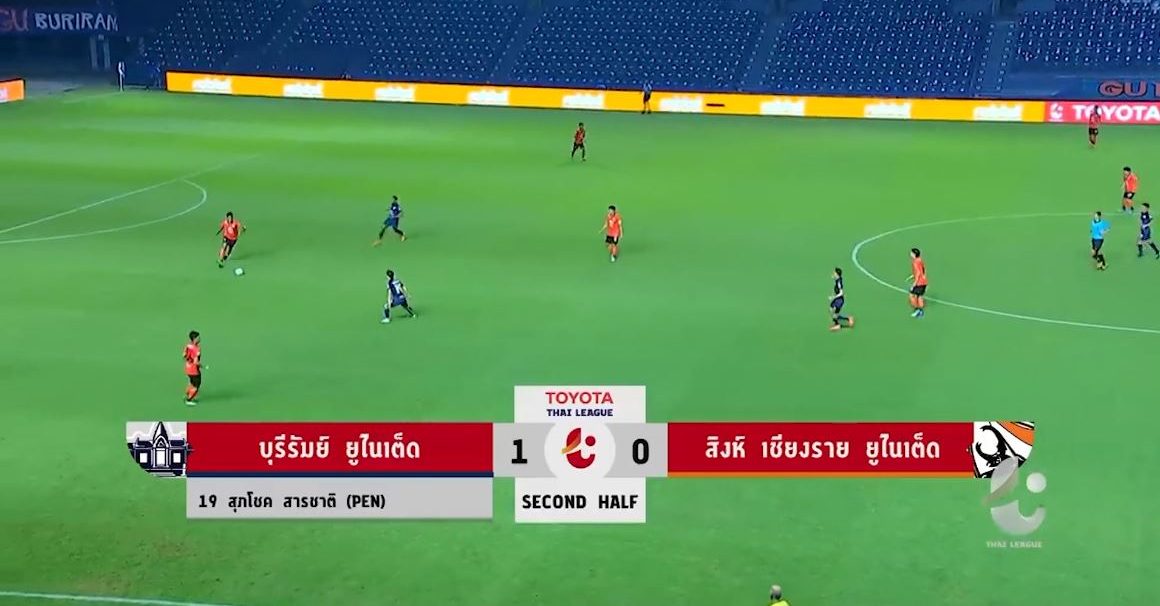 ฟุตบอลโตโยต้า ไทยลีก นัดที่ 22 ที่สนามช้าง อารีนา “ปราสาทสายฟ้า” บุรีรัมย์ ยูไนเต็ด ทีมอันดับ 3 เปิดบ้านพบกับ “กว่างโซ้งมหาภัย” สิงห์ เชียงราย ยูไนเต็ด ทีมอันดับ 6 เกมนี้ครึ่งแรกยังทำอะไรกันไม่ได้เสมอกัน 0-0 ครึ่งหลังนาที 71 บุรีรัมย์ เจ้าถิ่นมาได้จุดโทษ และเป็น สุภโชค สารชาติ รับหน้าที่สังหารยิงเข้าไป และเป็นประตูชัยในเกมนี้ช่วยให้ทีมบุรีรมัย์ เปิดบ้านชนะ สิงห์ เชียงราย 1-0 มีเพิ่มเป็น 41 คะแนน เท่ากับ การท่าเรือ แต่ประตูได้เสียบุรีรัมย์ดีกว่าขยับแซงขึ้นไปรั้งอันดับ 2 ส่วนเชียงรายยังอยู่อันดับ 6 มี 34 คะแนน