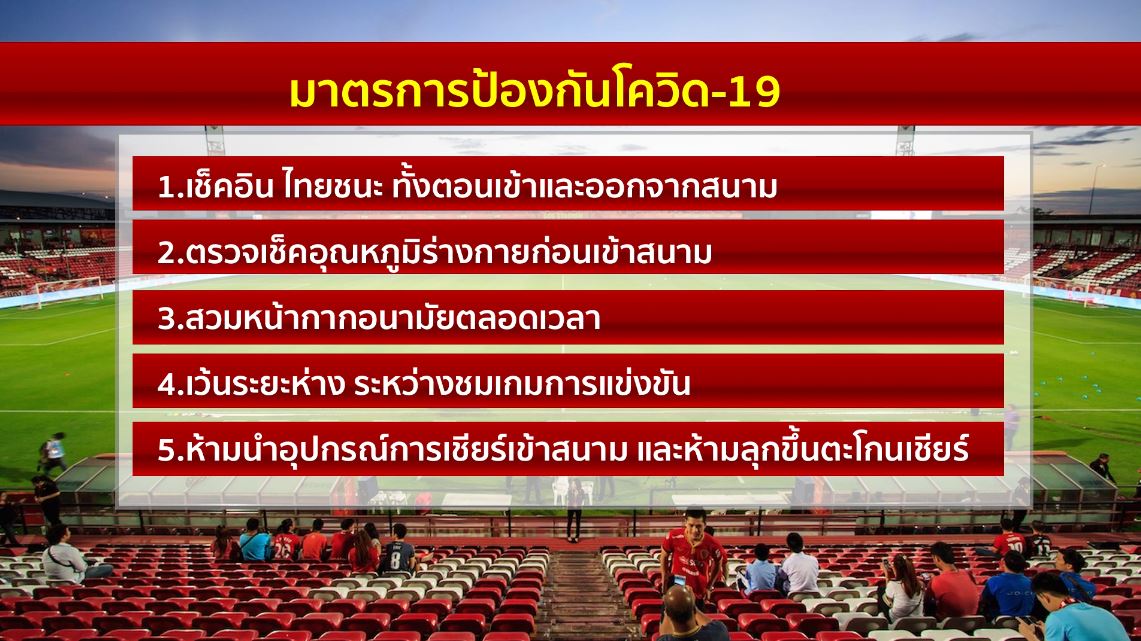 เอสซีจี สเตเดียม 3 มี.ค.- ศบค.อนุญาตให้การแข่งขันฟุตบอลไทยลีก เปิดให้แฟนบอลกลับเข้ามาชมเกมในสนามอีกครั้ง ภายใต้มาตรการป้องกันโควิด-19 อย่างเข้มงวด ติดตามจากรายงานของคุณรัฐภาคย์ พรประพีร์