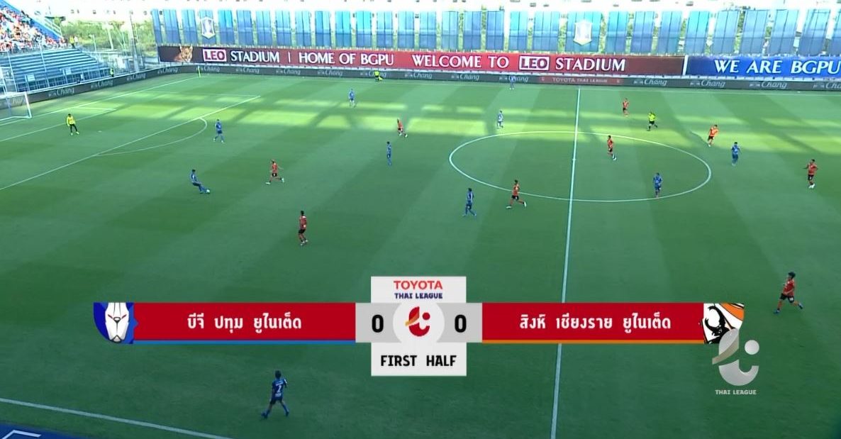 ลีโอ สเตเดียม 8 มี.ค.- “เดอะ แรบบิท” บีจี ปทุม ยูไนเต็ด ทีมแชมป์ฤดูกาลนี้ยังทำสถิติไร้พ่าย หลังเปิดบ้านเสมอกับ “แชมป์เก่า” สิงห์ เชียงราย ยูไนเต็ด 0-0 ในศึกฟุตบอลไทยลีก