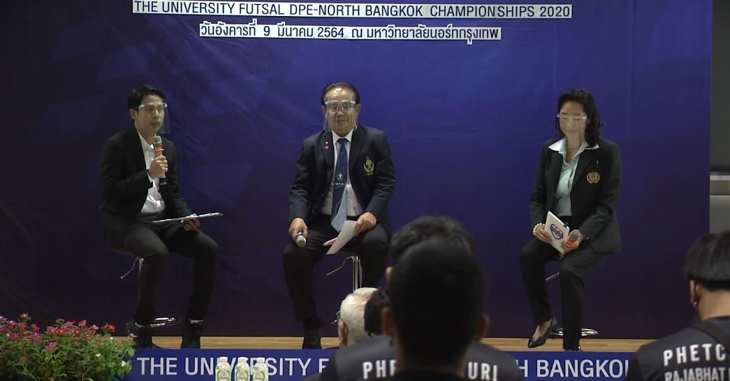นายสุพจน์ วงศ์พรหมท้าว รองอธิบดีกรมพลศึกษา พร้อมด้วยผู้ช่วยศาสตราจารย์ ดร. ปัทมา รูปสุวรรณกุล รองอธิการบดีฝ่ายบริหารและกิจการนักศึกษา ม.นอร์ทกรุงเทพ ร่วมจัดแข่งขันฟุตซอลอุดมศึกษา “กรมพลศึกษา-นอร์ทกรุงเทพ แชมเปียนชิพ” ปีการศึกษา 2563 ครั้งที่ 12 ชิงเงินรางวัลรวม 300,000 บาท ระหว่างวันที่ 16 มีนาคม ถึง 28 เมษายน เพื่อพัฒนาและยกระดับกีฬาฟุตซอลให้แพร่หลายระดับอุดมศึกษา ปีนี้มี 12 สถาบันเข้าร่วม โดยคู่เปิดสนาม ม.นอร์ทกรุงเทพ พบกับ ม.ราชพฤกษ์