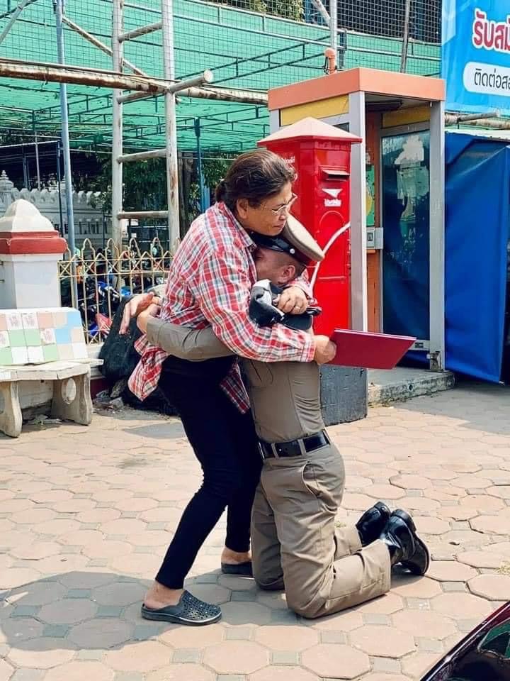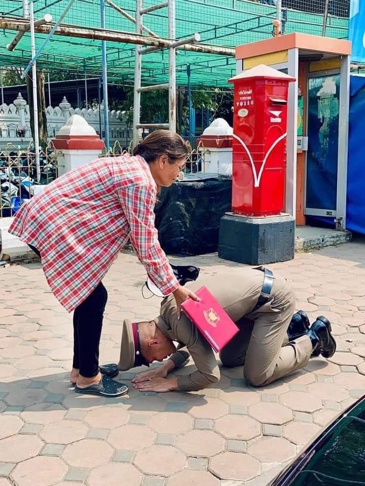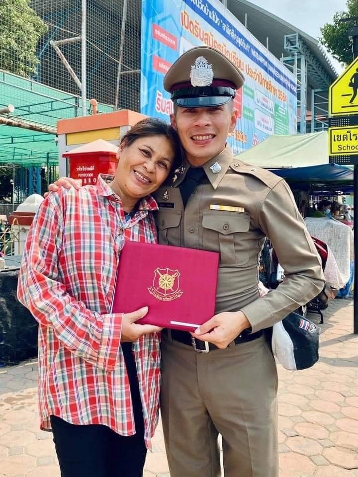 “กัปตันช้าง”กฤษดา วงษ์แก้ว กัปตันทีมฟุตซอลทีมชาติไทย และสโมสรพีทีที บลูเวฟ ชลบุรี เอฟซี ได้ก้มลงกราบเท้าคุณแม่ฉันทนา เผ่าพงศ์ หลังจบการอบรมหลักสูตรนักเรียนนายร้อยตำรวจ รุ่น 46 เป็นว่าที่ ร้อยตำรวจตรีกฤษดา วงษ์แก้ว-สำนักข่าวไทย