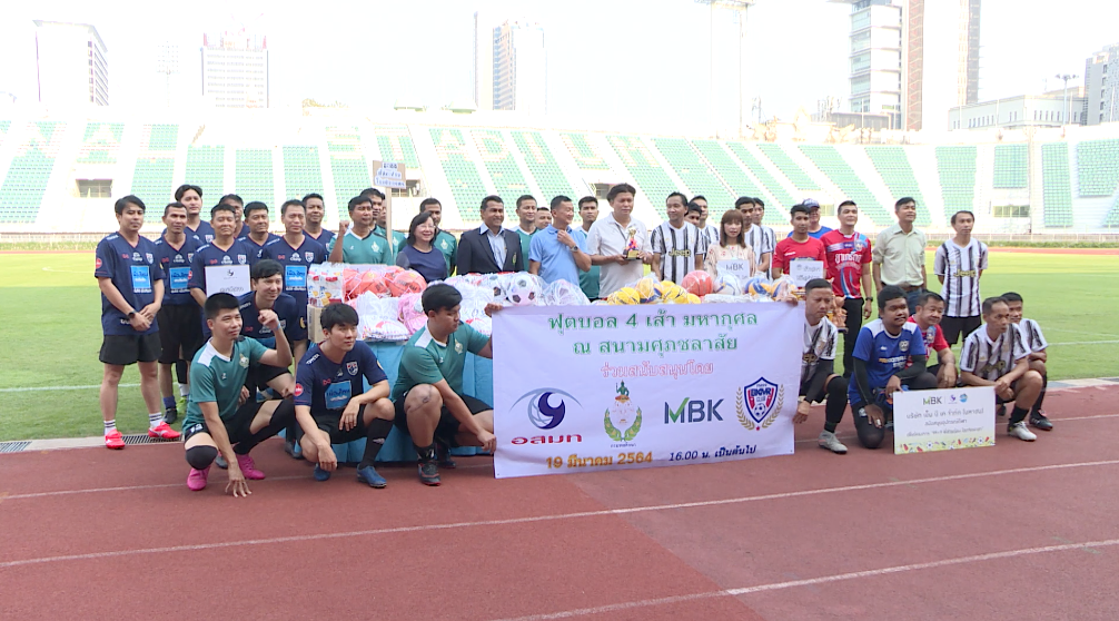 ชมรมกีฬาฟุตบอล อสมท ร่วมกับกรมพลศึกษา, ทีมฟุตบอลศูนย์การค้า เอ็มบีเค เซ็นเตอร์ และทีมแฟนคลับรายการบ้านเขาเมืองเรา ของคลื่นวิทยุเอฟเอ็ม 99 แข่งขันฟุตบอล 4 เส้าการกุศล ที่สนามศุภชลาสัย เพื่อระดมทุนการศึกษาในกิจกรรมโครงการ ”9+99 พี่ช่วยน้อง โลกจิตอาสา” ปีที่ 4 ของชมรมฟุตบอล บมจ.อสมท.เพื่อนำอุปกรณ์การศึกษา กีฬา และทุนการศึกษา ไปมอบให้กับนักเรียนที่ขาดแคลนในจังหวัดกาญจนบุรี 5 โรงเรียน ประกอบด้วย โรงเรียนบ้านหนองมะสัง ,โรงเรียนบ้านหนองใหญ่ ,โรงเรียนบ้านบะลังกา,โรงเรียนบ้านหนองจั่น และโรงเรียนบ้านหนองหวาย.-สำนักข่าวไทย