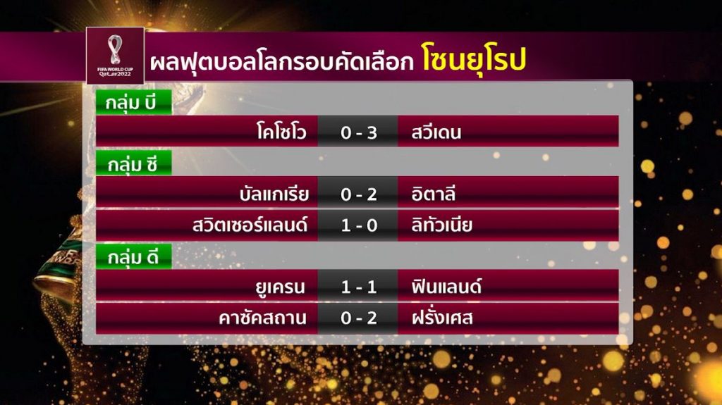 ส่วน โซนยุโรป กลุ่มไอ ทีมชาติอังกฤษ บุกชนะ แอลแบเนีย 2-0 ได้ประตูจาก แฮร์รี เคน ในนาที 38 และ เมสัน เมาท์ นาที 63 ทำให้อังกฤษชนะ 2 นัดติด มี 6 คะแนน นำเป็นจ่าฝูงของกลุ่ม นัดต่อไปเปิดบ้านพบ โปแลนด์ ในวันที่ 31 มีนาคมนี้