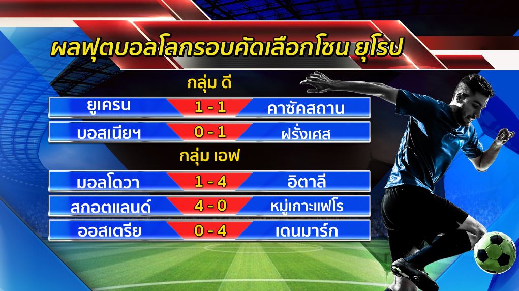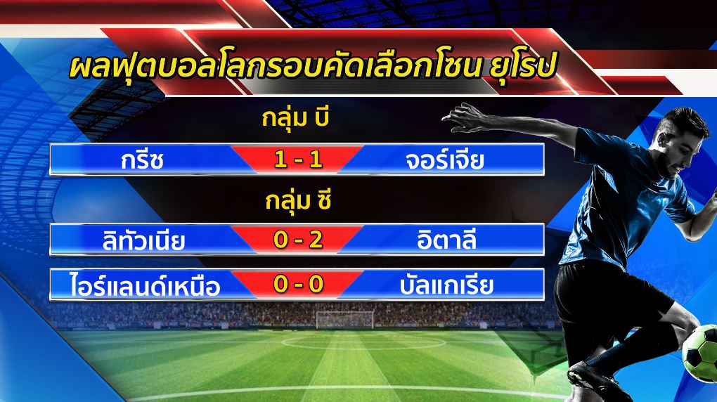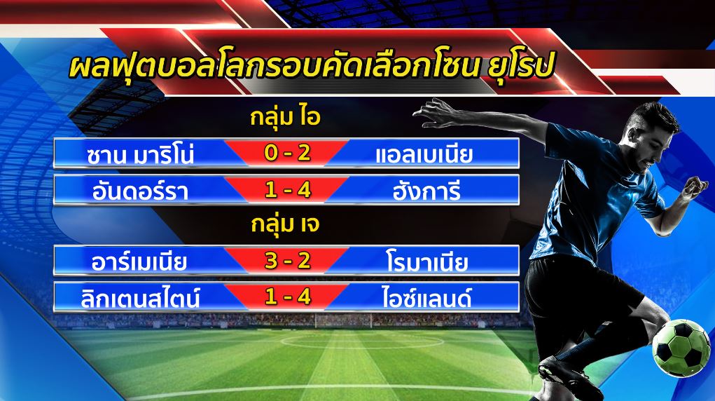 กลุ่มเจ “อินทรีเหล็ก” เยอรมนี พลิกล็อกแพ้คาบ้านให้ มาซิโดเนีย 1-2 เกมนี้ ทีมเยือนได้ประตูจาก โกรัน ปานเดฟ ในนาที 45+2 จากนั้นเยอรมนี ตามตีเสมอได้จากจุดโทษของ อิลคาย กุนโดกัน ในนาทีที่ 63 แต่ มาซิโดเนีย มาได้ประตูชัยจาก เอลจีฟ เอลมาส นาที 85 ทำให้มาซิโดเนีย ขึ้นมาอยู่อันดับ 2 แข่ง 3 นัดมี 6 แต้ม ลูกได้เสียดีกว่า เยอรมนี ที่มี 6 คะแนนเท่ากัน.-สำนักข่าวไทย