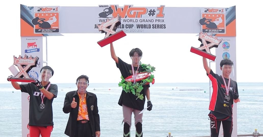 เจ็ตสกีชิงแชมป์โลก ที่หาดจอมเทียน พัทยา จ.ชลบุรี รุ่นเยาวชน Novice Ski stock เรือยืนห้ามปรับแต่งเครื่องยนต์ ธนวิชญ์ โมลี จากทีม Flamingo jet ski team ทำคะแนนรวม 4 โมโตได้สูงสุด 221 คะแนน คว้าแชมป์รุ่น Novice Runabout 1100 Stock เรือนั่ง 1100 ซีซี ห้ามปรับแต่งเครื่องยนต์ กีรติกร ผิวงาม จากทีม 777 performance riva racing thailand คว้าแชมป์โลก ทำได้ 221 คะแนน ชนะ ศศินา ผิวงาม นักแข่งหญิงจากทีมเดียวกันไปได้