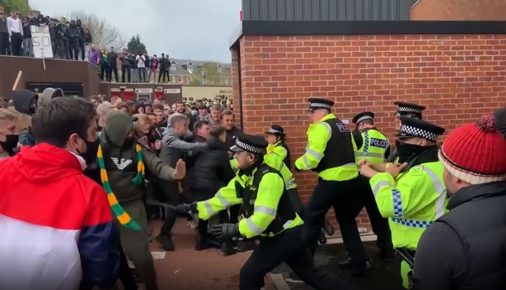 ศึก “แดงเดือด” ระหว่าง แมนเชสเตอร์ ยูไนเต็ด รับมือ ลิเวอร์พูล ที่สนามโอลด์ แทรฟฟอร์ด ในเกมพรีเมียร์ลีก อังกฤษ วันอาทิตย์ที่ 2 พฤษภาคม จำเป็นต้องเลื่อนการแข่งขันออกไป หลังเกิดเหตุแฟนบอล “ปีศาจแดง” บุกเข้าไปป่วนภายในสนามเพื่อประท้วงขับไล่ตระกูลเกลเซอร์ เจ้าของสโมสร เนื่องจากไม่พอใจตระกูลเกลเซอร์ ที่นำ แมนฯ ยูไนเต็ด เป็นหนึ่งใน 12 ชั้นนำของยุโรปไปร่วมจัดศึก ยูโรเปียน ซูเปอร์ ลีก โดยที่ไม่ถามความเห็นจากแฟนบอล ก่อนโดนวิจารณ์หนักและต้องถอนตัวไปแล้ว รวมทั้งยังต้องเขียนจดหมายเปิดผนึกขอโทษแฟนบอลด้วย