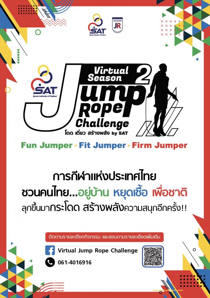 “การกีฬาแห่งประเทศไทยเล็งเห็นว่ากิจกรรมการออกกำลังกายลักษณะนี้ กำลังได้รับความนิยมเพิ่มมากขึ้น เนื่องจากการกลับมาแพร่ระบาดของเชื้อไวรัสโควิด 19 ในระลอกใหม่นี้มีแนวโน้มที่จะแพร่ระบาดอย่างต่อเนื่อง ประชาชนต้องปรับวิถีการดำเนินวิถีชีวิตประจำวัน ต้องอยู่ในช่วงการกักตัว ต้องเว้นระยะห่างทางสังคม ไม่สามารถไปฟิตเนสหรือไปออกกำลังกาย หรือเล่นกีฬาในชีวิตประจำวันได้ตามปกติ การกีฬาแห่งประเทศไทย จึงได้จัดกิจกรรม SAT Virtual Jump Rope Challenge Season 2 (แซท เวอร์ชวล จัมพ์ โร้ป ชาเลนจ์ ซีซั่น 2) ภายใต้แนวคิด “โดด เดี่ยว สร้างพลัง” กระโดดเชือกออกกำลังกายผ่านช่องทางสื่อออนไลน์ อยู่ที่บ้านหรือสถานที่ส่วนตัวขึ้นเป็นครั้งที่ 2 เพื่อเป็นการรณรงค์ให้ประชาชนหันมาออกกำลังกาย เล่นกีฬาเพื่อสุขภาพแบบวิถีใหม่หรือนิวนอร์มัลโดยหลีกเลี่ยงความแออัด ไม่ต้องรวมกลุ่มชุมนุมกัน ไม่ต้องมีการสัมผัส สามารถลดภาวะความเครียดในช่วงสถานการณ์ลดการแพร่ระบาดของโรคโควิต19 ได้ อีกทั้งยังเป็นกิจกรรมการเล่นกีฬาที่ใช้พื้นที่น้อย มีอุปกรณ์เพียงไม่กี่ชิ้นก็สามารถออกกำลังกายได้แล้วประชาชนทุกเพศ ทุกวัย สามารถทำได้อย่างง่ายดายในทุกสถานที่ส่วนตัว ไม่เกิดอันตราย ไม่มีผลกระทบกับสิ่งแวดล้อม มีค่าใช้จ่ายน้อย เป็นกิจกรรมการออกกำลังกายที่สร้างเสริมสุขภาพให้แข็งแรงและลดความเสี่ยงจากการแพร่ระบาดของโรคโควิต 19 นอกบ้านได้เป็นอย่างดี”