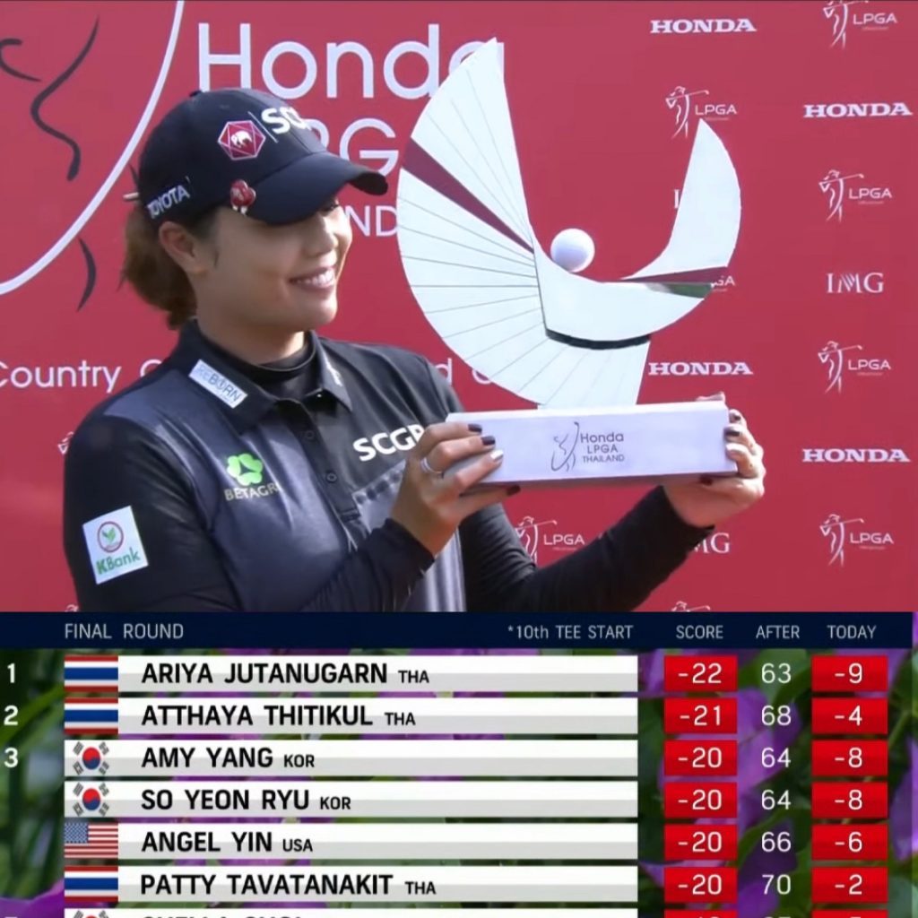 9 พ.ค.64 ชลบุรี- “โปรเม” เอรียา จุฑานุกาล คว้าแชมป์กอล์ฟฮอนด้า แอลพีจีเอ ไทยแลนด์ 2021 ที่สนามสยามคันทรี่ คลับ พัทยา โอลด์ คอร์ส จังหวัดชลบุรี และกลายเป็นนักกอล์ฟไทยคนแรกที่คว้าแชมป์รายการนี้ โดย เอรียา ทำสกอร์วันสุดท้าย 9 อันเดอร์พาร์ 63 ทำให้สกอร์รวมสี่วันจบ 22 อันเดอร์พาร์ 266 และเป็นแชมป์ที่ 11 ในการแล่นอาชีพแอลพีจีเอ ทัวร์. เอาชนะ “โปรจีน” อาฒยา ฐิติกุล ที่พัตต์เบอร์ดี้พลาดในหลุมสุดท้าย จบที่ 21 อันเดอร์พาร์ ส่วน”โปรแพตตี้”ปภังกร ธวัชธนกิจ โปรมือ 12 ของโลก จบอันดับ 3 ร่วม ที่ 20 อันเดอร์พาร์