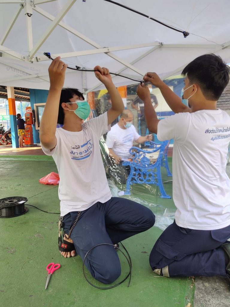 “เราอยากทำงานแบบบูรณาการตามสถานการณ์ ต้องทำแบบรอบด้านมันถึงจะสำเร็จ เพราะชาวบ้านยังต้องออกมาทำมาหากินเลี้ยงปากท้อง สัญจรผ่านพื้นที่สาธารณะ ดังนั้น อะไรที่จะช่วยบรรเทาปัญหา คลายความวิตกกังวลลงได้เราก็ส่งทีมอาสาไปทำทันที ซึ่งขณะนี้ติดตั้งซุ้มนี้ครบทุกจุดตามเป้าหมายแล้ว ก็ช่วยให้ทุกคนมั่นใจขึ้นเวลาออกมาทำงานนอกบ้าน