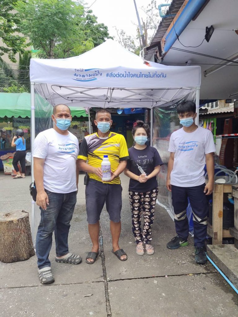 สำหรับชุมชนที่มูลนิธิได้ติดตั้งซุ้มดังกล่าวเรียบร้อยแล้ว อาทิ ชุมชนพัฒนาใหม่, ชุมชน 70 ไร่, ชุมชนล็อค 4-5-6, ชุมชนล็อค 1-2-3, ชุมชนวัดคลองเตยใน, ชุมชนร่มเกล้า, ชุมชนโรงหมู, ชุมชนบ่อนไก่พัฒนา, ชุมชนเคหะบ่อนไก่เป็นต้น โดยซุ้มดังกล่าวจะพ่นน้ำฆ่าเชื้อที่ได้รับมาตรฐานจากกรมอนามัย ที่สามารถสัมผัสกับผิวหนังมนุษย์ได้ มีลักษณะการฉีดพ่นแบบละอองฝอยทำให้น้ำยามีประสิทธิภาพสูงขึ้น