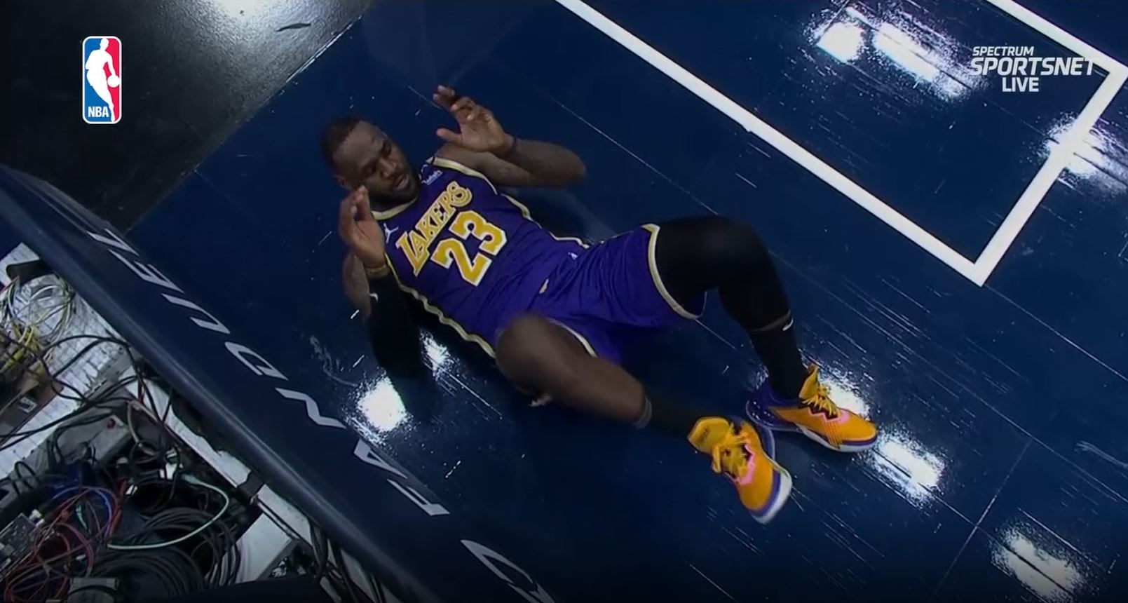 สหรัฐ 17 พ.ค.-เลอบรอน เจมส์ ซูเปอร์สตาร์เอ็นบีเอ สหรัฐ ของทีมลอสแองเจลิส เลเกอร์ส บาดเจ็บข้อเท้าในเกมที่ทีม ชนะ นิวออร์ลีนส์ เพลิแกนส์ 110-98